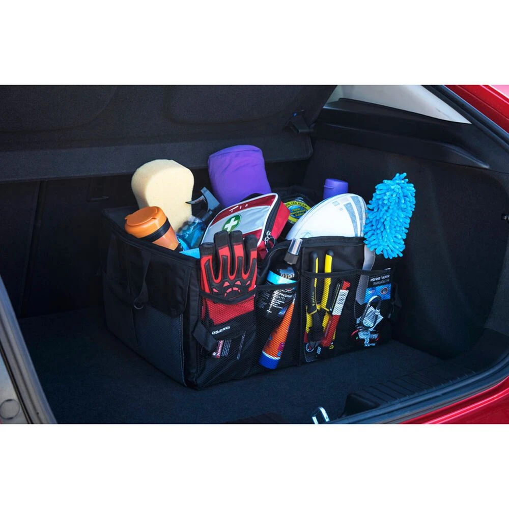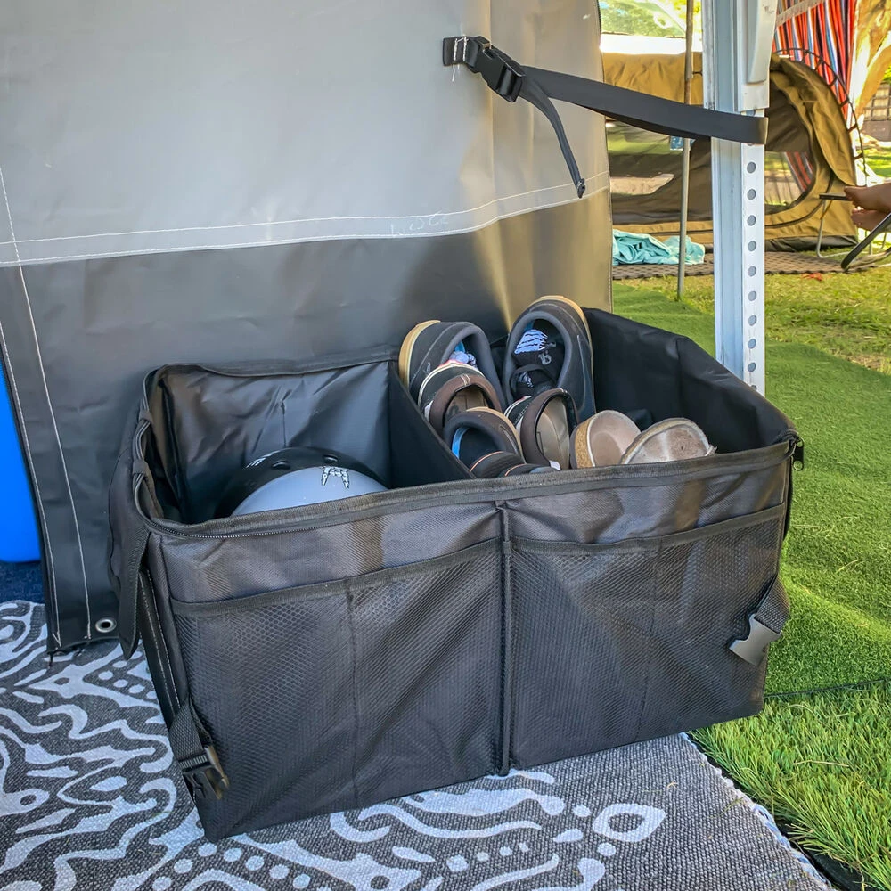 - Hook & loop system on the base attaches organiser to the boot carpet
