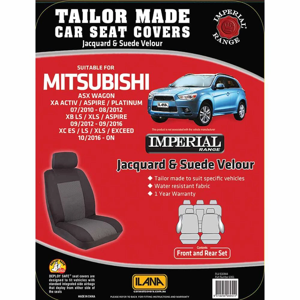 - A full two row set of tailor made front and rear seat covers to suit Mitsubishi ASX XA and XB Wagon, 07/2010 onwards