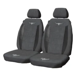 Spruce up your car interior in comfort and style with a set of R.M.Williams Suede Velour Seat Covers. The iconic Longhorn and logo embroidery in white make these covers stand out from the crowd, with a soft and luxurious suede velour material that makes for an ultra comfortable journey. Thick foam backing ensures that the seats underneath remain neat and tidy for the long run, with high quality construction and a 2 year warranty. Installation is simple thanks to the adjustable buckle system – no loops or tying required. A large sized map pocket on the rear of these seat covers makes for handy storage for those in the back seat as well.