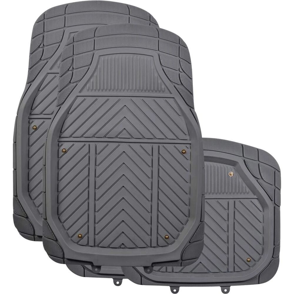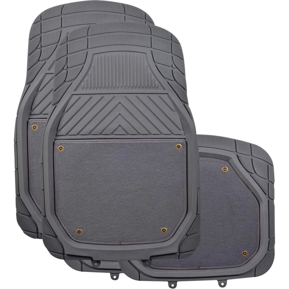 Protect your cars upholstery and keep it dirt free with this set of combination, deep dish floor mats from Ridge Ryder. This set includes car mats for both the front and the back of the car. The combination design provides the look and feel of carpet for the city and when your heading off road – simply remove the carpet centres for hard wearing, TPE floor protection. The deep dish and gridded surface is ideal for trapping dirt, snow and mud until disposed of. Made from durable, easy to clean material this set of four has an anti-slip backing, ensuring it stays in place once installed. This is a universal design which makes it easy to fit in a wide range of vehicles.