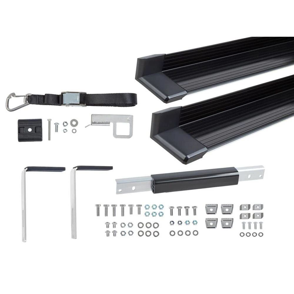 If you’re looking at carrying a extension ladder on your roof racks, the 3-metre ladder rack is the perfect solution. Designed to withstand heavy duty use and the elements, the 3-metre extension ladder rack is designed to fit wide variety of vans, Ute’s, 4WD and wagons. Your ladder will be secured with a specially designed adjustable retainer arm, retaining strap including easy to use cam buckle and runner covers to protect ladders.