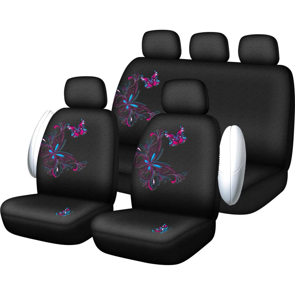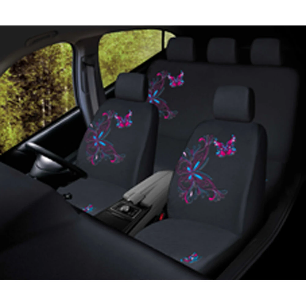 The inside of these covers are lined with padded foam to improve comfort, reduce movement and provide extra protection to your factory upholstery. Combine this with a set of SCA Butterfly floor mats for a total interior protection solution. This set of Butterfly seat covers is sure to spice up your interior and protect it into the future.