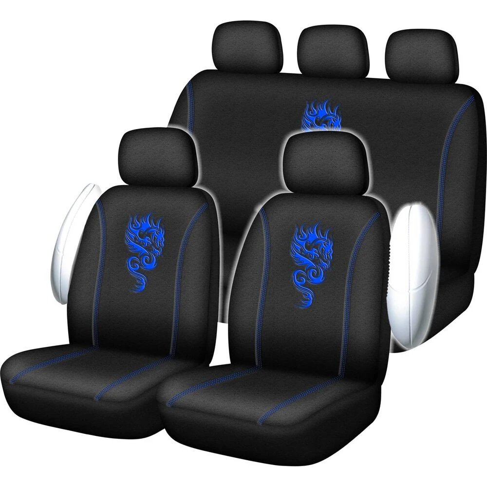 The inside of these covers are lined with padded foam to improve comfort, reduce movement and provide extra protection to your factory upholstery. Combine this with a set of SCA Dragon floor mats for a total interior protection solution. Available in either red or blue this set of Dragon seat covers is sure to spice up your interior and protect it into the future.