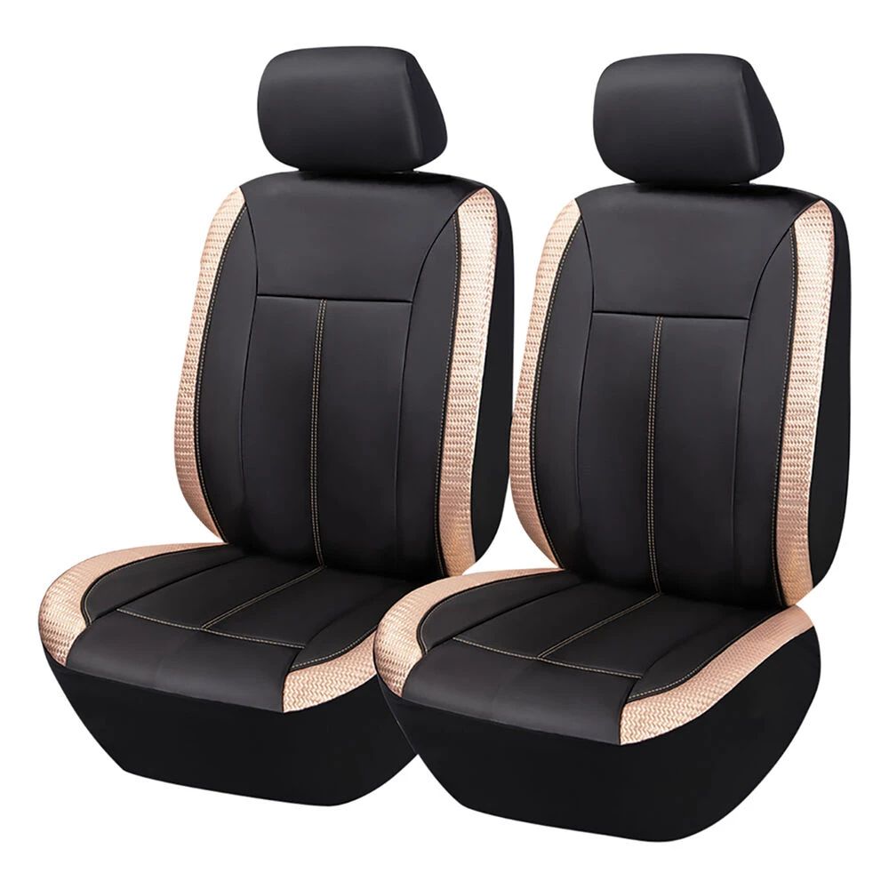 SCA Leather Look Seat Cover – Black/Gold, Adjustable Headrests, Airbag Compatible
