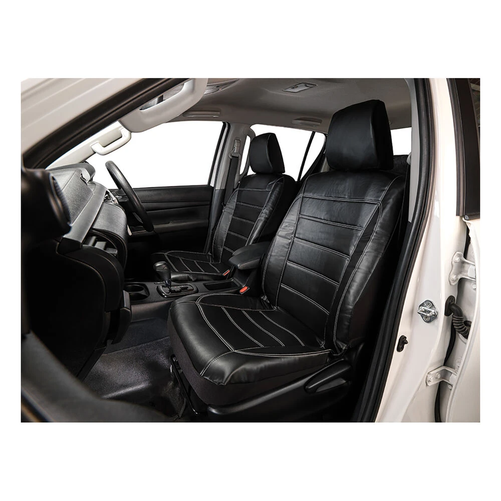 Give your interior a premium feel with these SCA Leather Look seat covers. Manufactured from PU Leather these seat covers will provide protection from dirt, dust, moisture, UV and abrasion to your factory upholstery. Designed to fit front bucket seats with adjustable head rests and with or without side air bags these seat covers are suitable for a wide range of vehicles.