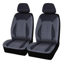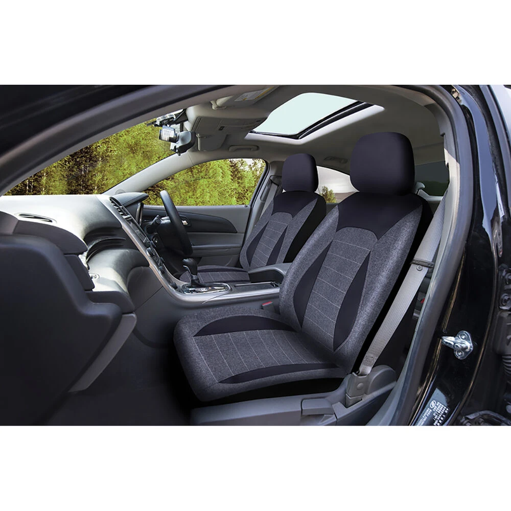 SCA PU Leather Look & Linen Look Seat Covers – Black/Grey, Adjustable Headrests, Size 30, Airbag Compatible