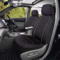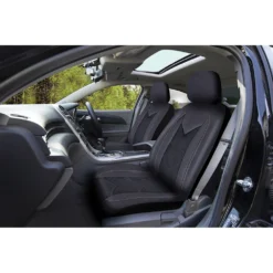 SCA Sports Leather Look And Mesh Seat Covers – Black And Blue Adjustable Headrests Airbag Compatible
