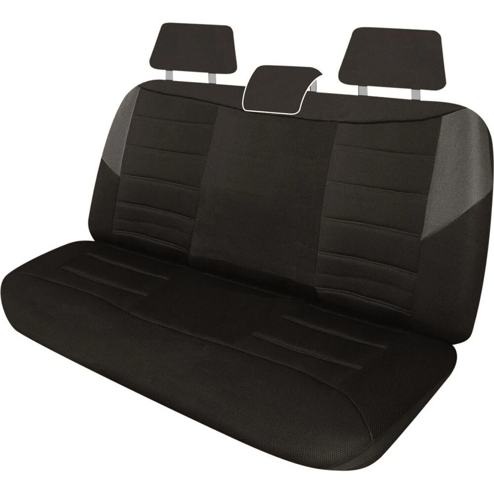- A single seat cover suitable for a rear bench seat with adjustable headrests and no arm rest or folding split