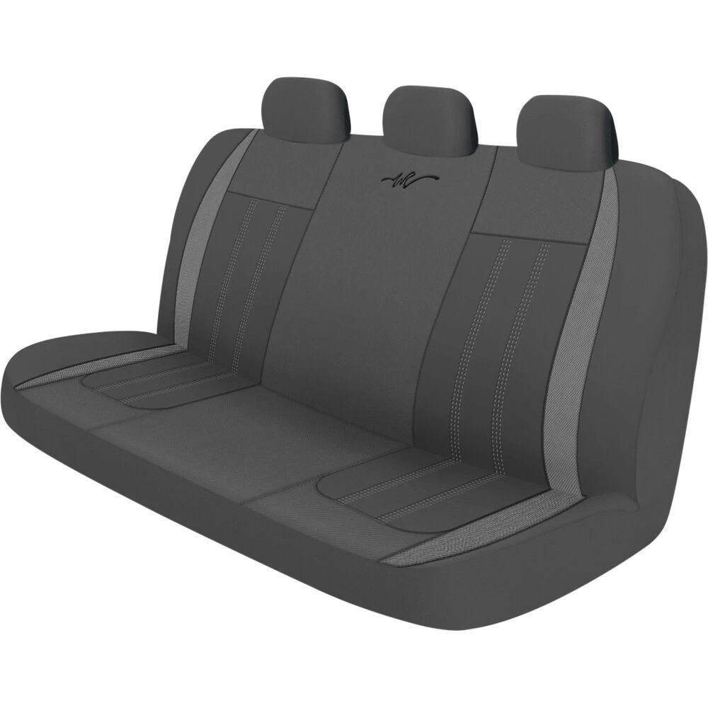 - A single seat cover suitable for a rear bench seat with adjustable headrests, split folding